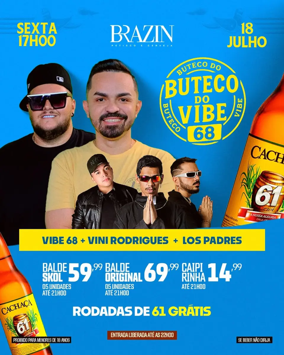 Pra fechar a sexta-feira com aquela vibe de barzinho gostosa, temos o Buteco do Vibe 68 la no Brazin!