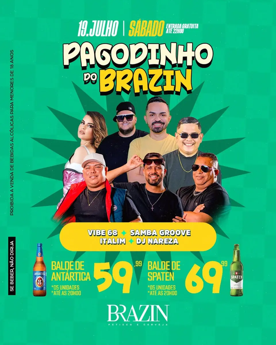 O Brazin também ta on no sábado, com o Pagodinho do Brazin, já tradicional da casa! O anexo também ta aberto com o Baile do Lunnar!