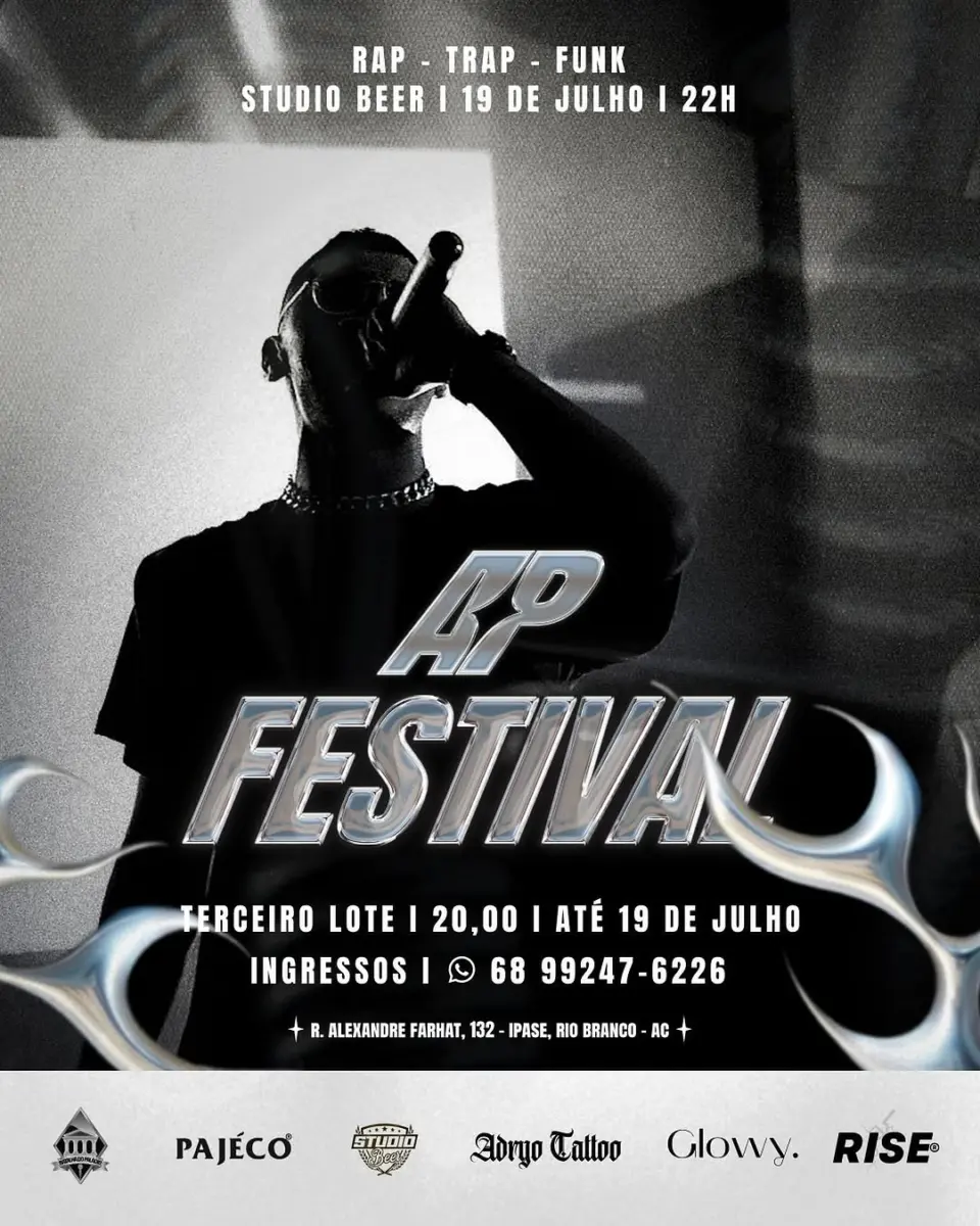 Pra fechar a sabadão, teremos o AP Festival, lá no Studio, com Trap, Rap e Funk