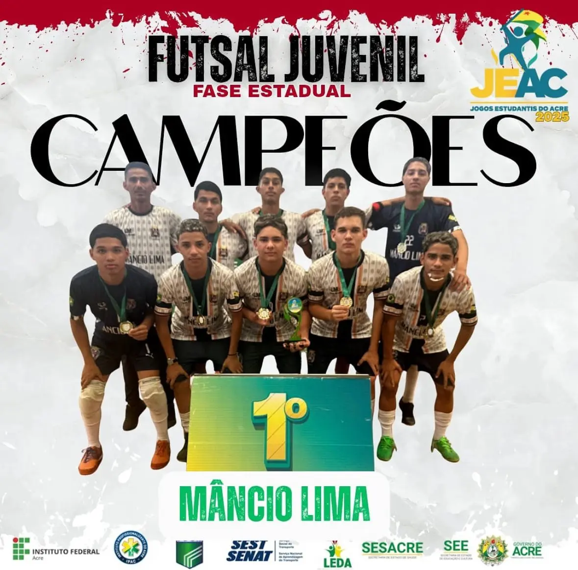 A equipe de futsal sub-17 da Escola Estadual de Ensino Fundamental e Médio 1° de Maio, do município de Mâncio Lima, conquistou de forma invicta o título da fase estadual dos Jogos Estudantis 2025. A competição foi realizada entre os dias 21 e 23 de julho, em Rio Branco, e reuniu os melhores times escolares do estado. Com a vitória, os jovens atletas garantiram vaga na etapa nacional da competição, um feito inédito e histórico tanto para a escola quanto para o município.