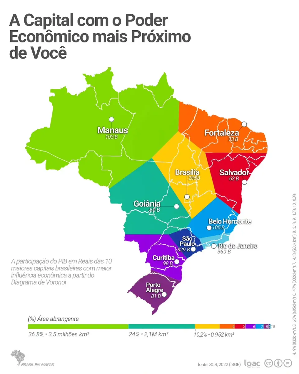 A análise, baseada em um Diagrama de Voronoi, considerando o Produto Interno Bruto (PIB) das capitais brasileiras/Foto: Reprodução