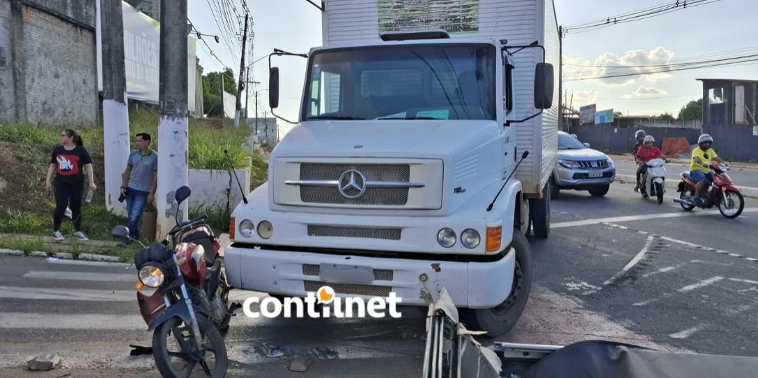 Um motociclista identificado como Alcindo Ferreira Braga, de 38 anos, ficou ferido após colidir com um caminhão na tarde desta terça-feira (9), na estrada Dias Martins, no bairro Jardim Europa, em Rio Branco.
