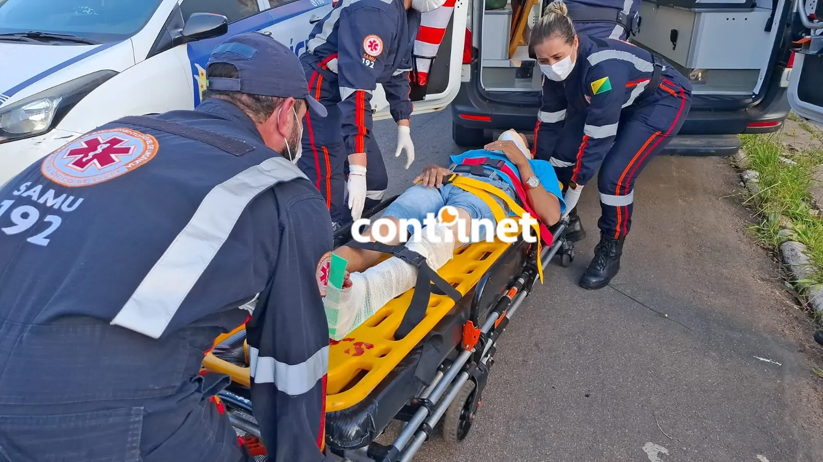 Socorristas estabilizam o motociclista ainda no local do acidente, antes do encaminhamento ao Pronto-Socorro/Foto: ContilNet