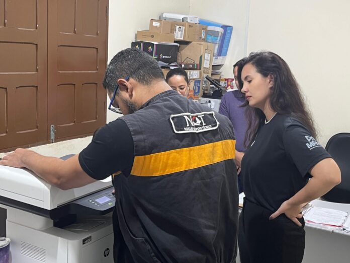 As equipes cumpriram mandados de busca e apreensão em vários pontos ligados à administração municipal, incluindo a Secretaria de Saúde, a Secretaria de Meio Ambiente, a Farmácia Municipal e residências de três pessoas investigadas. Com autorização judicial, foram recolhidos celulares e computadores, cujos dados serão analisados para levantar mais evidências.