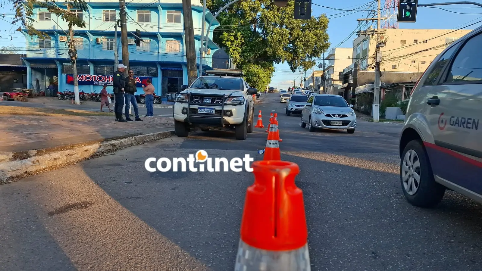 Carro modelo Voyage, que atropelou a pedestre, ficou parado na via até a chegada da polícia e do socorro/Foto: ContilNet