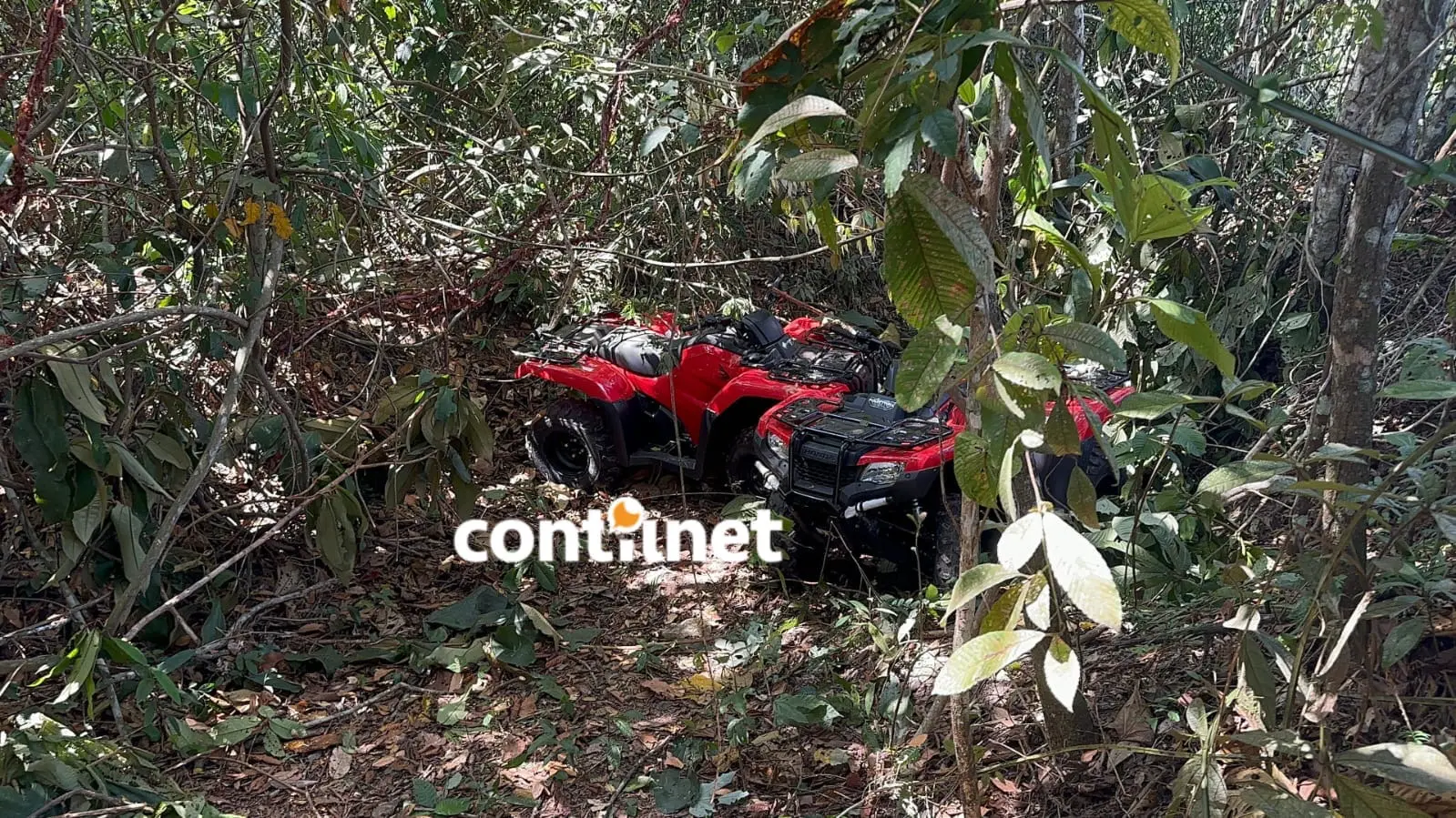 Com as informações repassadas, equipes da PM iniciaram buscas na região e localizaram o caminhão abandonado em uma área de mata no próprio ramal. A carga não estava no veículo, mas, com o auxílio do rastreador veicular da empresa Star Motors, os policiais intensificaram as buscas e encontraram os dois quadriciclos e as quatro motocicletas escondidos em uma área de mata fechada no final da Travessa Katerine, também no bairro Vila Acre.