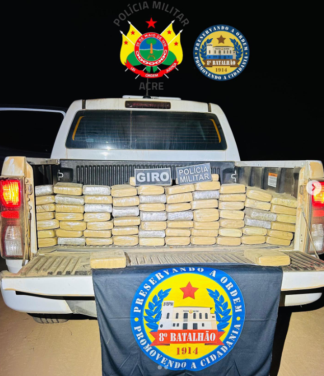 Durante a madrugada deste sábado (6), policiais do 8º Batalhão de Polícia Militar apreenderam cerca de 73 quilos de drogas no Ramal Nova Olinda, localizado na rodovia Transacreana, em Sena Madureira.