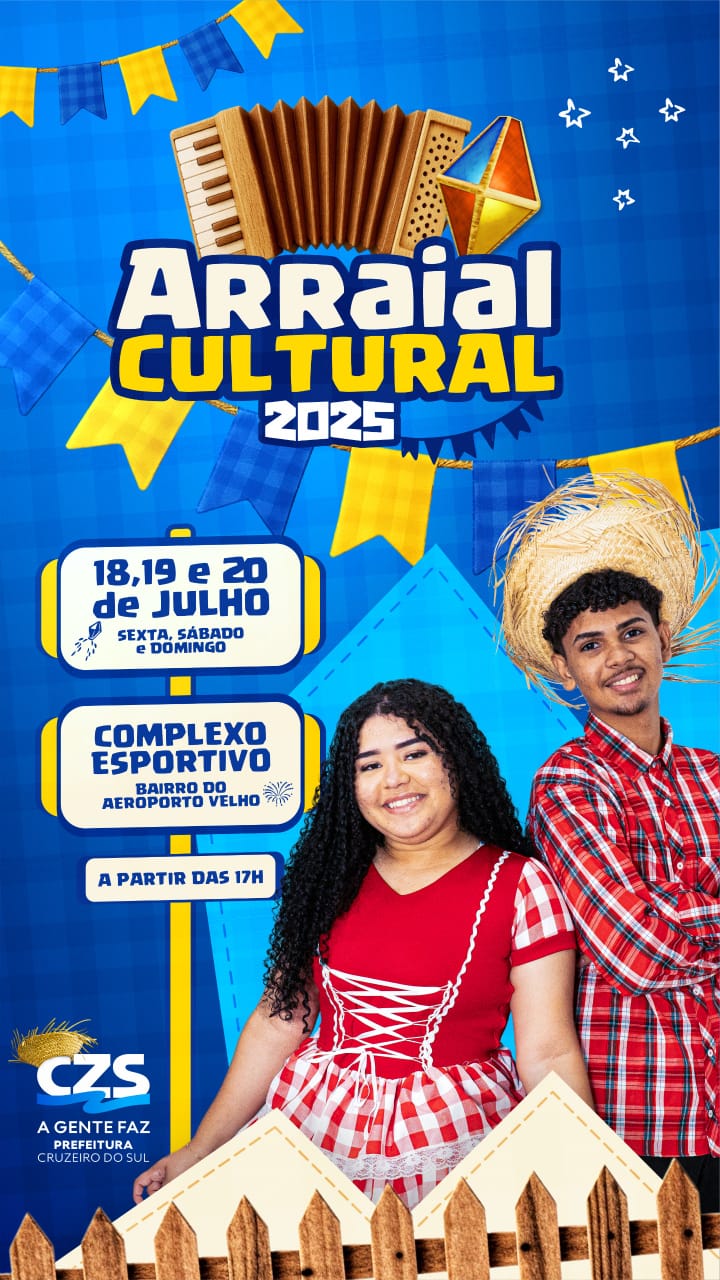“Estamos nos preparativos finais do Arraial Cultural. Ontem à noite já iniciamos a ornamentação do espaço. As apresentações culturais, grupos juninos, DJs, grupos de dança e bandas musicais já estão programadas. Os artistas estão nos ensaios finais para os dias 18 e 19, quando se apresentarão no nosso Arraial Cultural de Cruzeiro do Sul”, afirmou.