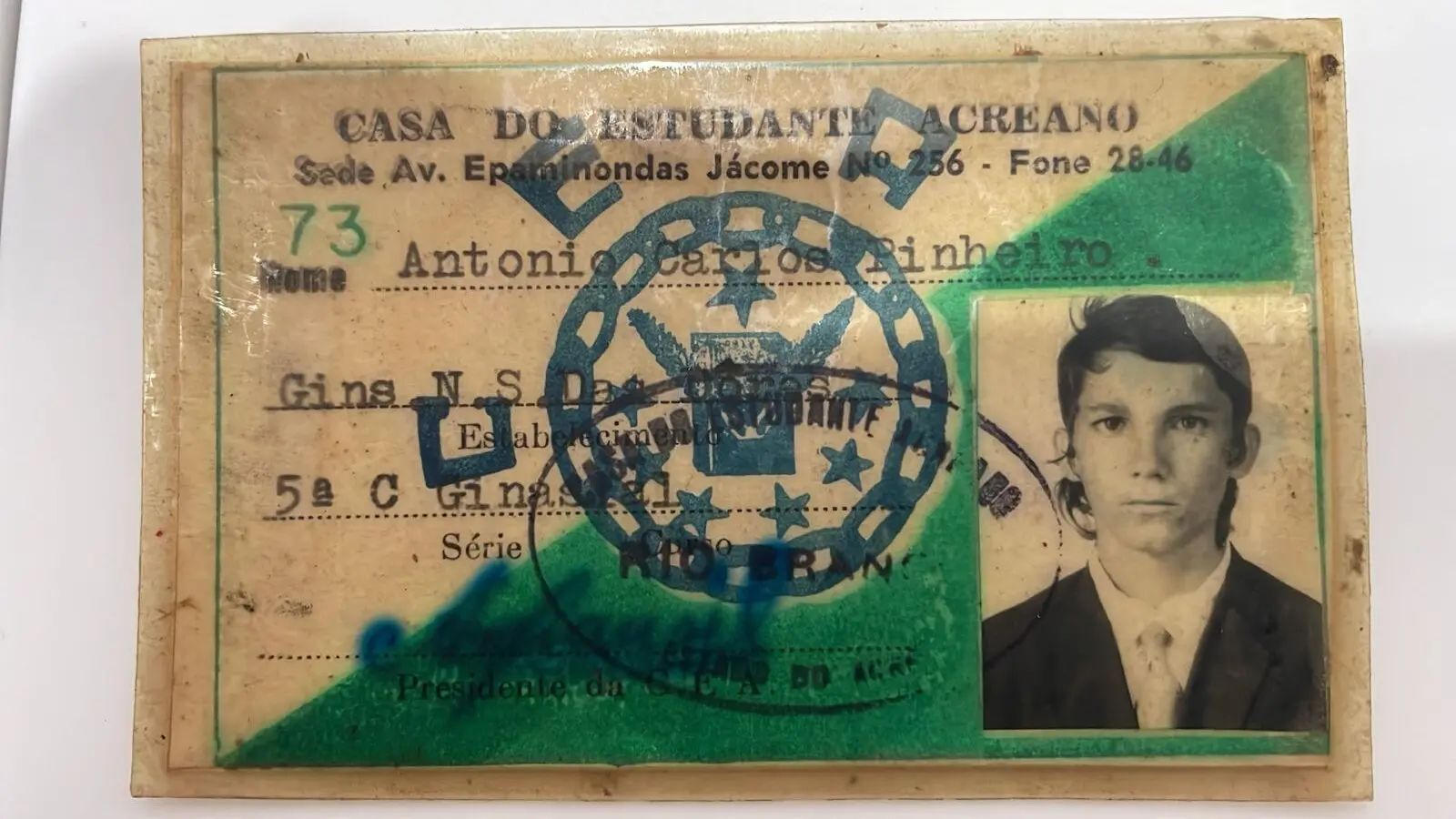 Carteira de Estudante usada por Antônio para ir ao show há 50 anos / Foto: Cedida