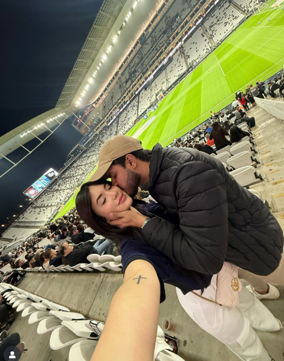 O anúncio foi feito de forma simples e direta: uma foto postada por Rogéria, em que ela aparece ganhando um beijo na bochecha de Cristian, nos corredores da Neo Química Arena, em São Paulo. A legenda não deixa dúvidas — o casal está oficialmente junto.