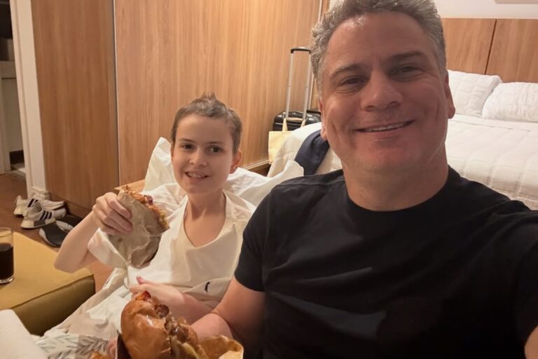 Julio Sérgio Bertagnoli e Enzo posam juntos no hospital