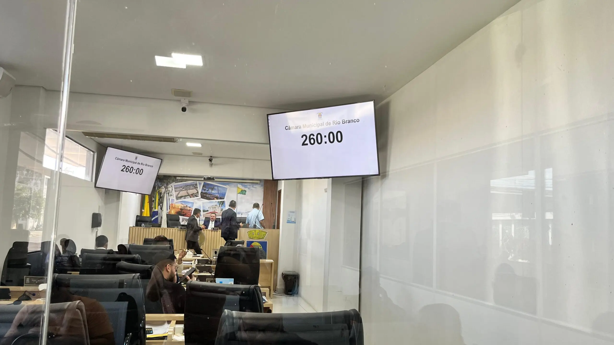 A sessão ordinária desta terça-feira (15) na Câmara Municipal de Rio Branco segue suspensa há mais de quatro horas e meia. Os trabalhos foram interrompidos por volta das 11h da manhã, com previsão de retomada às 14h, mas até às 15h ainda não haviam sido retomados. A pausa prolongada ocorre no último dia de atividades legislativas do semestre, antes do início do recesso parlamentar.