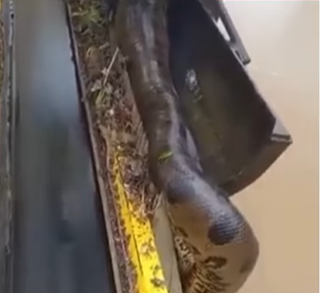 Nas imagens, é possível ver o tamanho da serpente e ouvir o espanto de quem tenta soltar o animal.