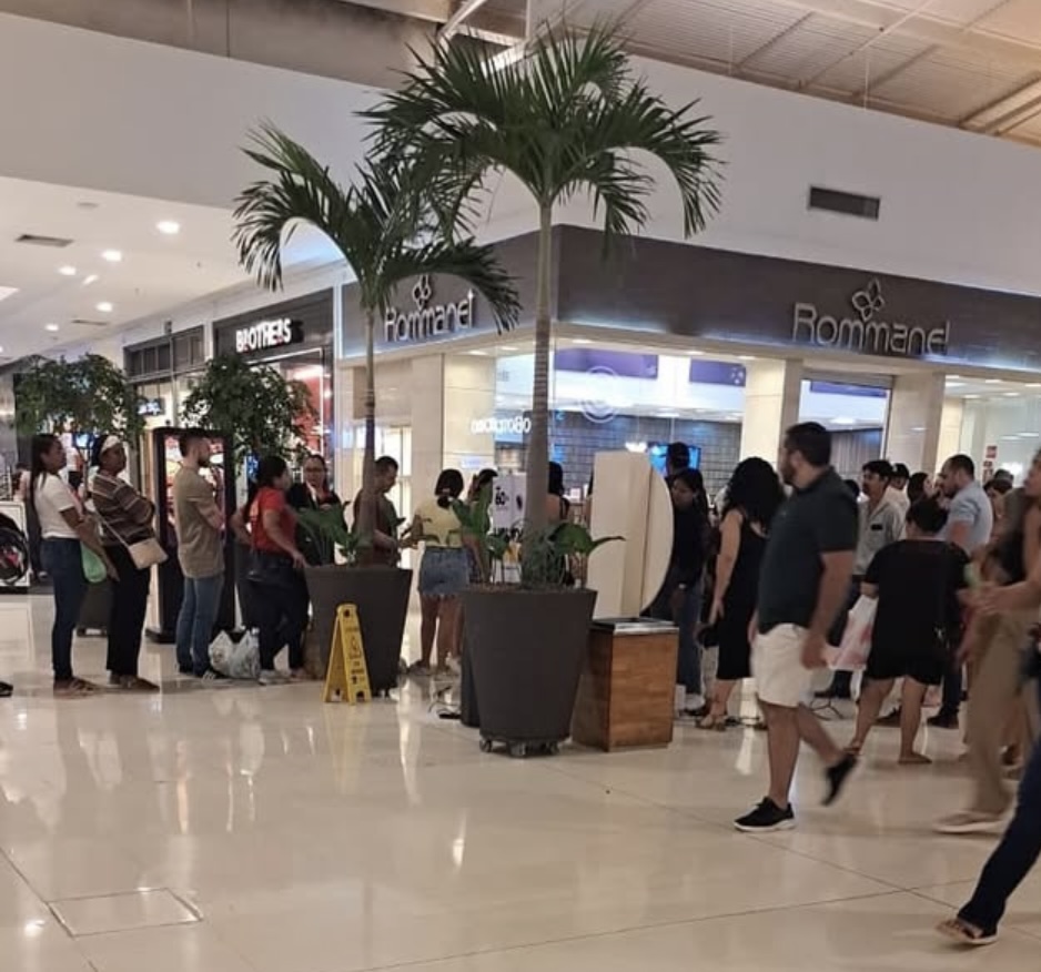 Troca de alimentos por ingressos da Expoacre forma fila gigante no Via Verde Shopping. Foto: Reprodução/@enjoyclub.ac
