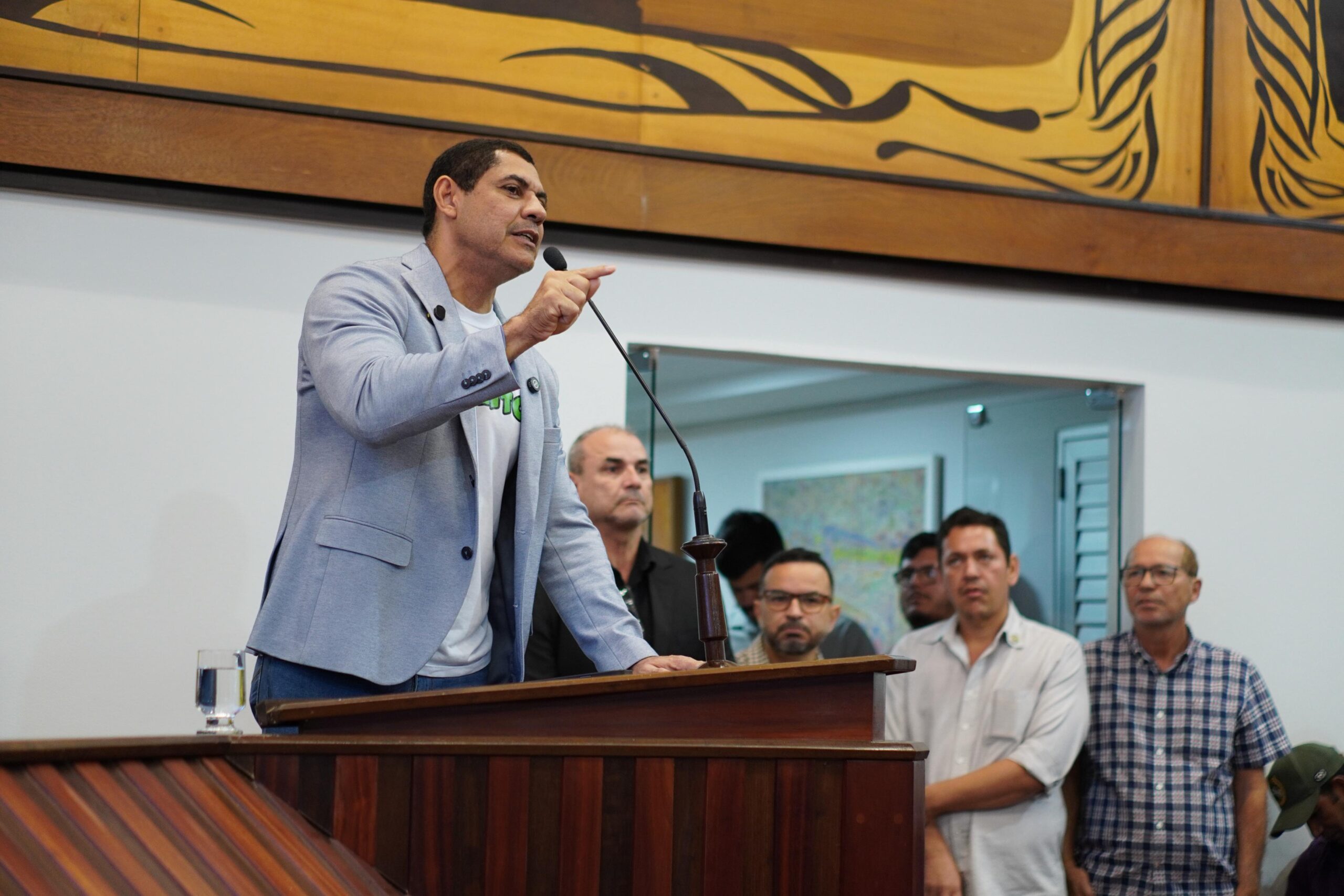 Deputado federal Coronel Ulysses durante fala firme em audiência pública na Aleac nesta sexta-feira (11), em defesa dos produtores rurais/Foto: Buiufilms