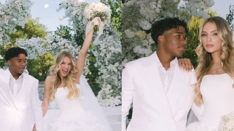 Nas redes sociais, os dois esbanjaram muito luxo e amor ao compartilhar detalhes do casamento realizado ao ar livre em um espaço com muito verde, arcos florais e vista para um pequeno lago. A decoração era composta por tons de verde e branco, palco voltado para a água e música ao vivo, com direito à violinista para os convidados presentes.