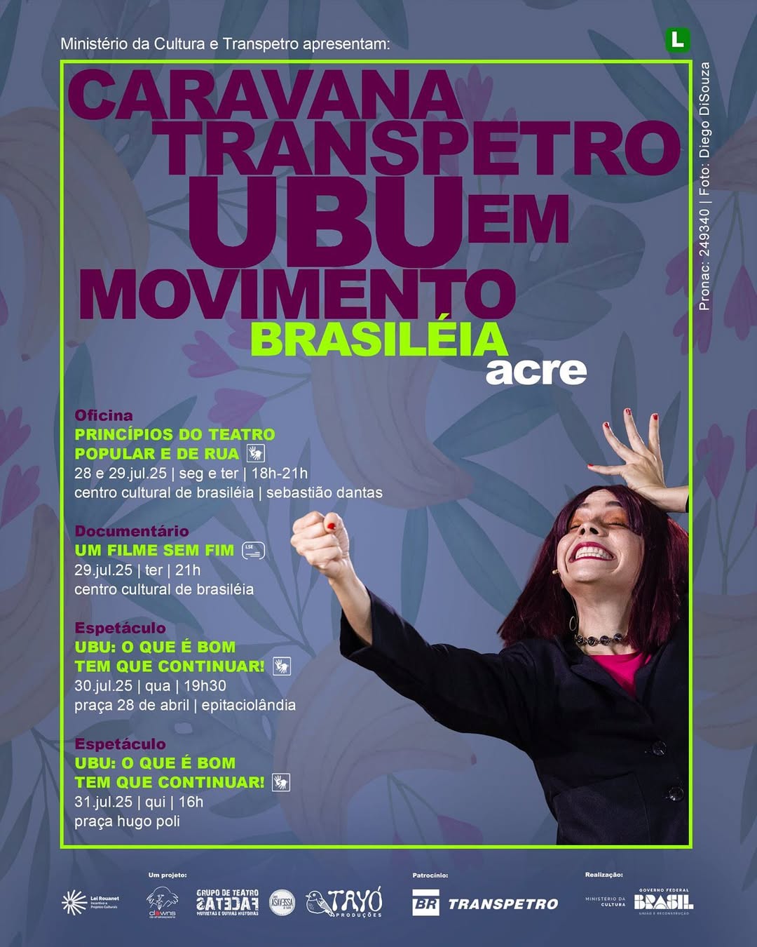A arte toma conta da rua nesta semana em Brasiléia! O espetáculo “UBU: O que é bom tem que continuar!” chega à cidade com toda a força do teatro popular e promete transformar a Praça Hugo Poli em um palco vibrante de crítica, riso e reflexão. A apresentação acontece na quarta-feira, 31 de julho, às 18h, com entrada gratuita.