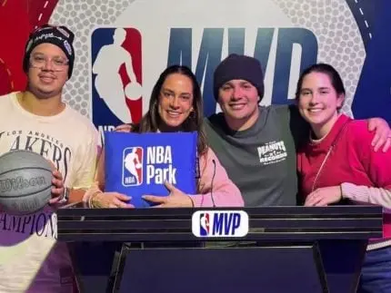 Silvia também exibiu alguns detalhes do museu do NBA Park e celebrou o fato de o marido torcer para o mesmo time de basquete que ela. “Estamos em um museu e aqui tem peças autografadas, umas boas com [o formato] as mãos dos jogadores.”