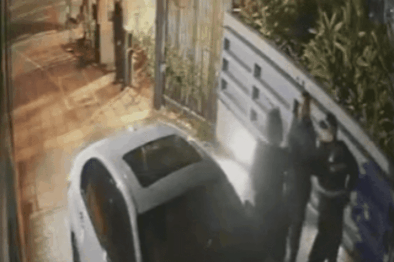 Imagens gravadas por câmeras de segurança mostram o homem saindo do veículo e desferindo um soco em um dos guardas. Na sequência, ele é contido e colocado em uma viatura, onde começa a dar chutes no vidro traseiro e danifica o veículo oficial.