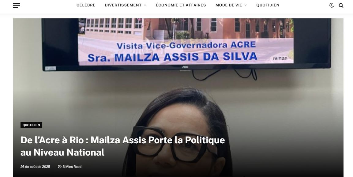O jornal francês estampou a manchete “Do Acre ao Rio: Mailza Assis leva a política para o cenário nacional” e ressaltou a trajetória da vice-governadora marcada pelo compromisso com causas sociais e pela construção de parcerias estratégicas. A matéria, assinada pela correspondente internacional Claudia Cataldi, enfatizou programas conduzidos por Mailza, como o Juntos Pelo Acre, e sua gestão voltada para políticas públicas de combate à pobreza, valorização de profissionais e integração entre Estado, municípios e sociedade civil.