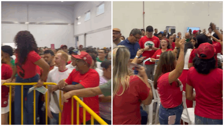 O ambiente estava animado, e as pessoas cantaram em voz alta o jingle do presidente: “Olê, olê, olê, olá, Lula, Lula”, demonstrando entusiasmo e apoio à visita presidencial.