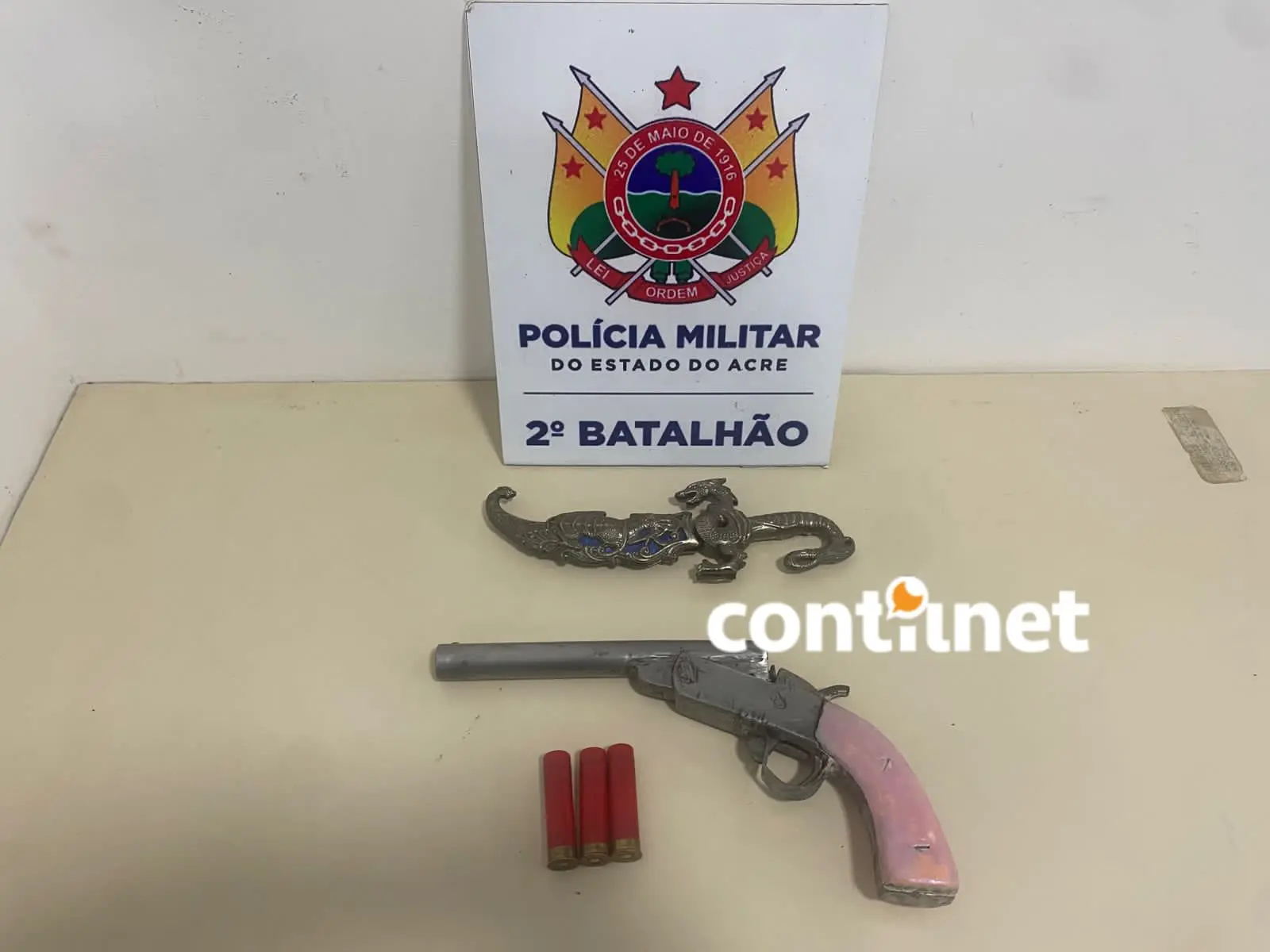 Uma ação da Força Tática do 2º Batalhão da Polícia Militar do Acre (2º BPM) resultou na apreensão de uma arma de fogo calibre 28, munições e uma arma branca na tarde desta quinta-feira (31), em uma residência localizada no bairro Calafate, em Rio Branco.