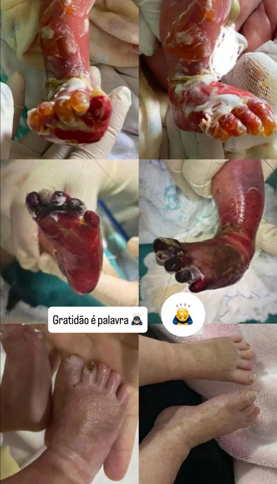 A história da pequena Aurora Maria ganhou um novo capítulo nesta quarta-feira (6). A tia da bebê, Fátima Mesquita, fisioterapeuta, publicou registros do antes e depois de sua recuperação. A bebê sofreu queimaduras graves nas pernas e pés durante um banho na maternidade de Cruzeiro do Sul (AC), poucos dias após nascer, em junho deste ano.