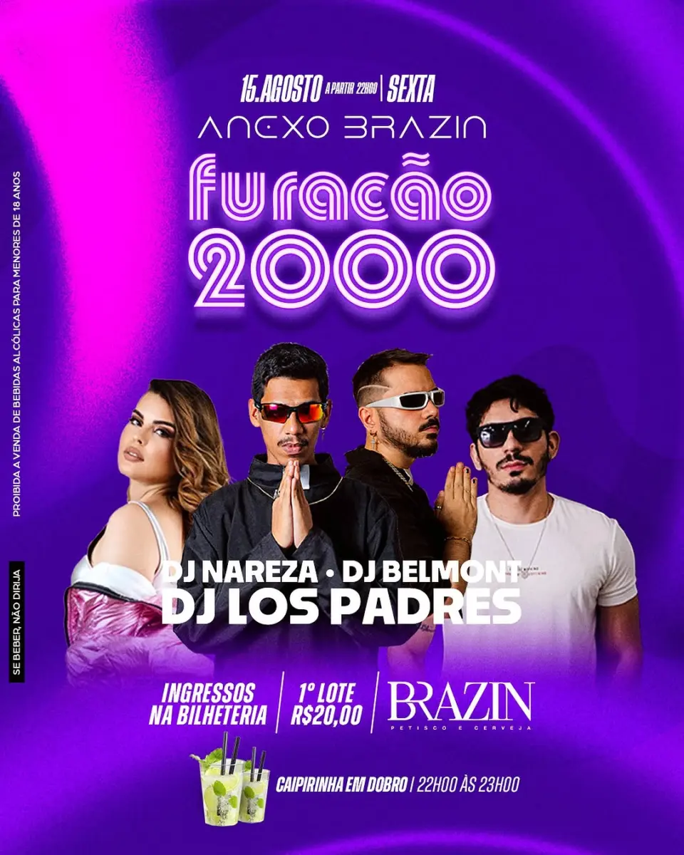 Agora se liga que o Anexo Brazin vai ta com aquele funk nostálgico do Furacão 2000, pra relembrar os hits que você jurava ter esquecido e provar que ainda tem aquele passinho guardado.