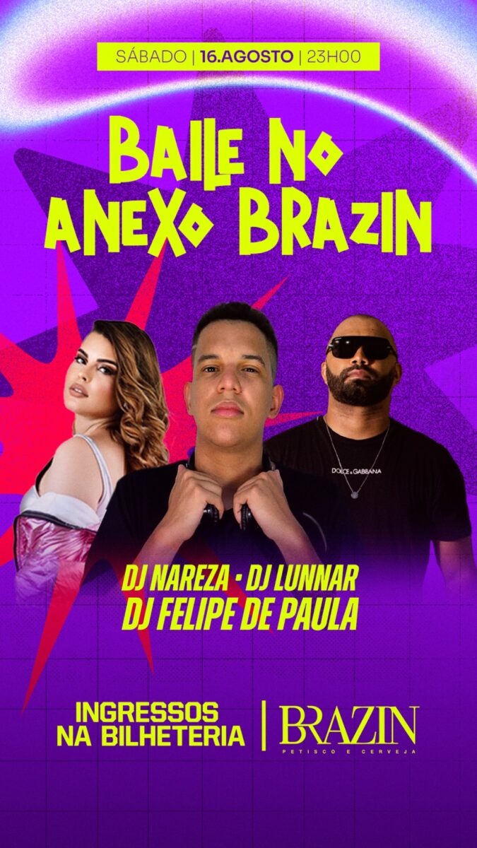 Agora se liga que o Anexo Brazin vai ta com aquele funk nostálgico do Furacão 2000, pra relembrar os hits que você jurava ter esquecido e provar que ainda tem aquele passinho guardado.