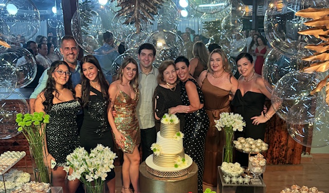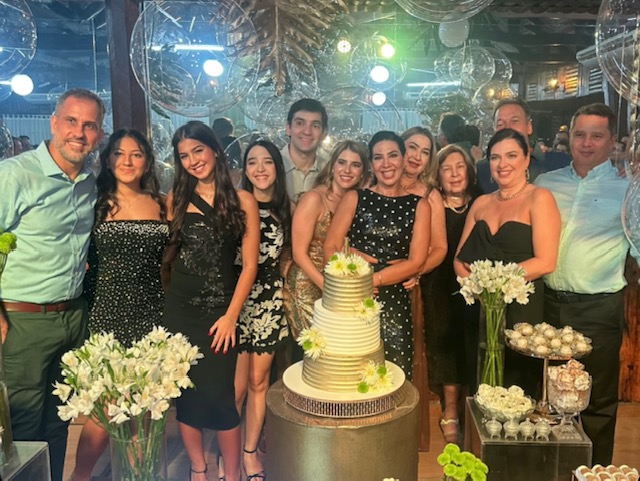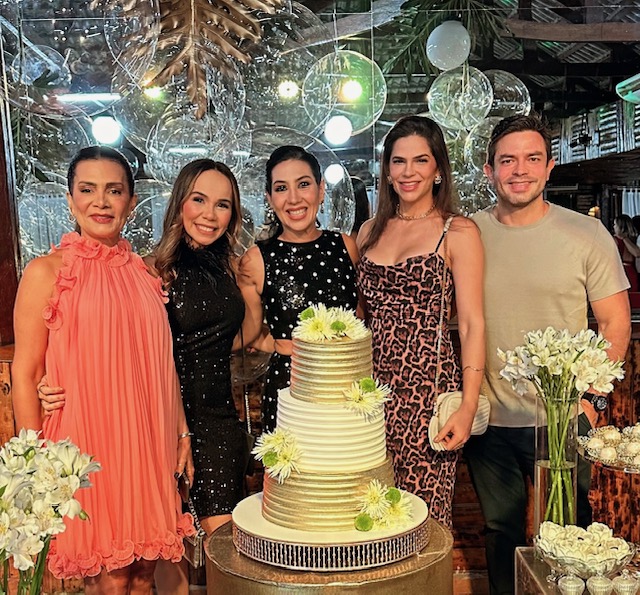 O grande destaque da festa foi a apresentação da bateria da Escola de Samba da Vila do Fuxico, que contagiou a aniversariante e os convidados com muito samba, alegria e energia. O ritmo envolvente fez todos se levantarem para dançar e celebrar, tornando a noite ainda mais memorável. Entre risos, abraços e aplausos, por lá circularam: