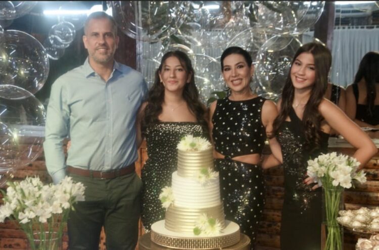 O Deputado Estadual Marcus Cavalcante celebrou a chegada de mais um ano de vida na sexta-feira, 22 de agosto. A comemoração aconteceu em sua residência, em clima intimista e harmonioso, reunindo familiares e amigos próximos. Na foto, o parlamentar posa ao lado da esposa, Misslane Cordeiro, e das filhas, Íris e Isadora, que completaram a alegria da noite.