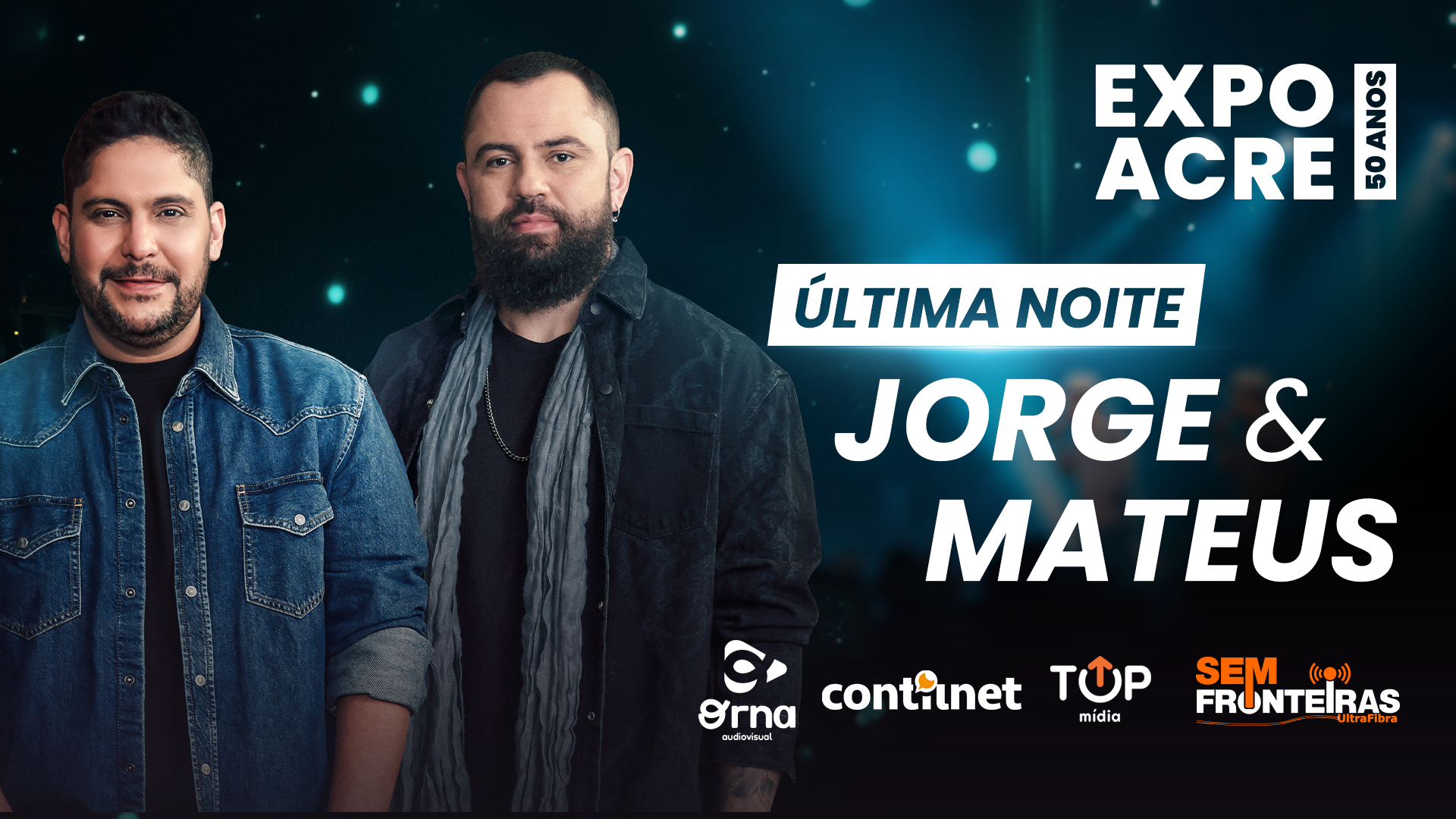 O ContilNet, em parceria com a Orna Audiovisual e a Top Mídia, vai transmitir ao vivo neste domingo (3) o tão aguardado show da dupla Jorge & Mateus, atração nacional que encerra com chave de ouro a Expoacre 2025.
