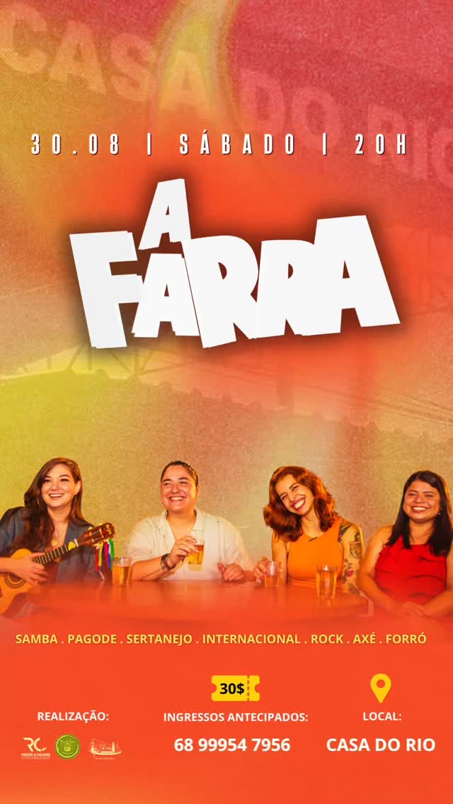O quarteto feminino A Farra, composto por Duda Modesto, Camile Castro, Bel Cordeiro e Eliane Voz vai animar a Casa do Rio. Tem de tudo: sertanejo, piseiro, MPB, sucessos internacionais, rock e até aquela moda pra dançar de rosto colado.