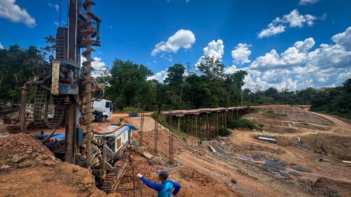 Ao todo, a estrada terá 11 km pavimentados, integrando-se à construção da ponte de concreto sobre o Rio Andirá. A estrutura já está com 40% de execução concluída e inclui fundações, blocos de pilares e transporte de vigas metálicas de 20 metros, garantindo à comunidade um acesso seguro para serviços de saúde, educação e escoamento da produção agrícola.