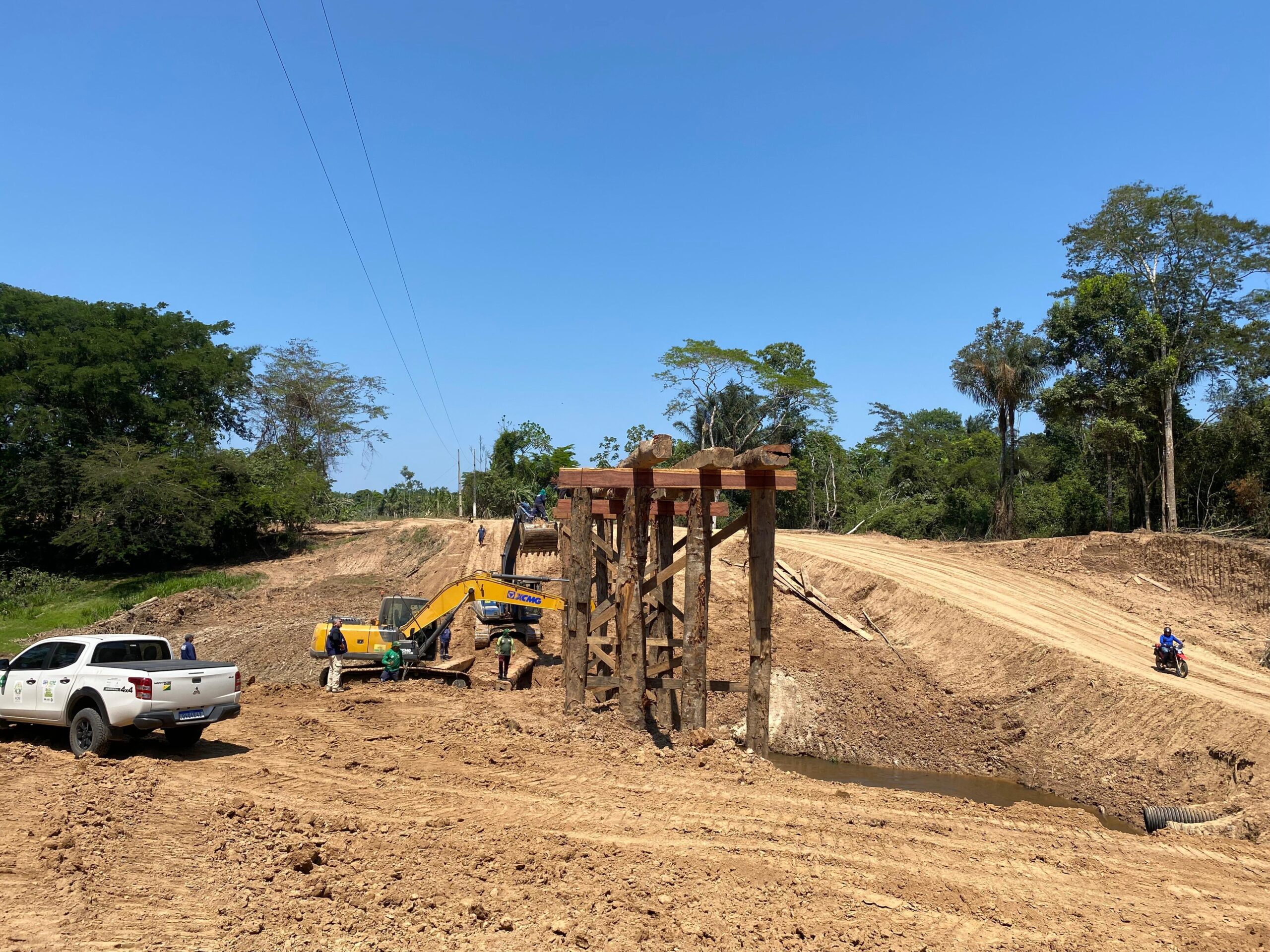 O governo do Acre, por meio do Departamento de Estradas de Rodagem, Infraestrutura Hidroviária e Aeroportuária (Deracre), trabalha na recuperação da ponte sobre o Igarapé Preto, localizada na BR-307, comunidade Santa Maria, em Cruzeiro do Sul. A estrutura apresentava condições precárias, o que gerava preocupação entre os moradores da região.