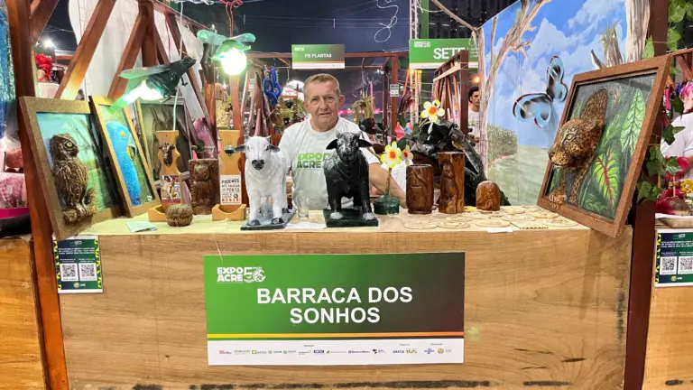A Expoacre 2025 tem de destacado no quesito inovação, e entre as atrações mais autênticas está o trabalho do artista plástico e artesão Enoque Tavares, que vem encantando o público com obras que retratam a essência da Amazônia.