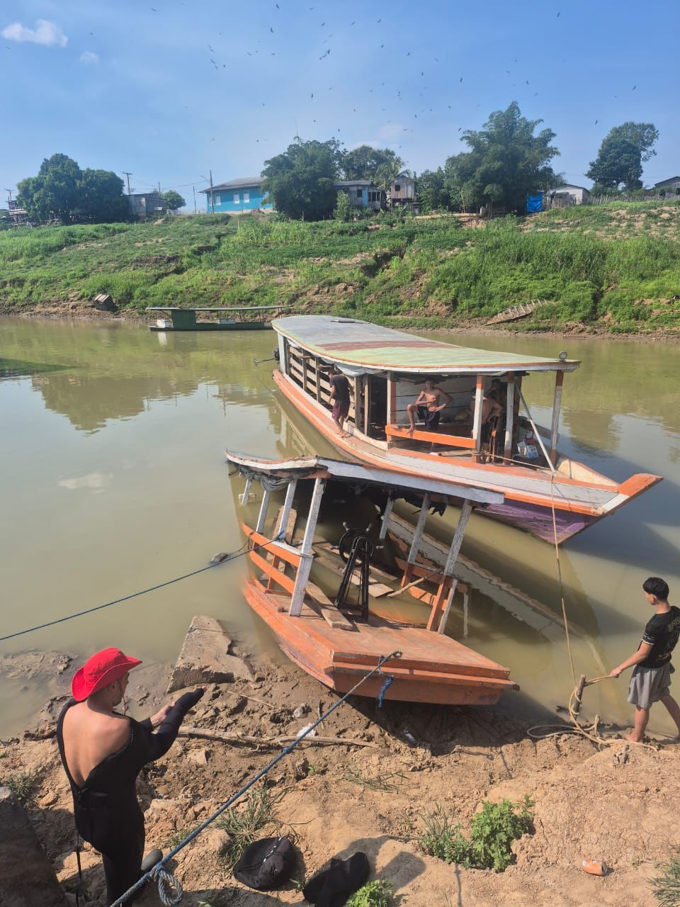 Segundo informações, o barco estava atracado no porto da Feira Nova e, em determinado momento, submergiu.