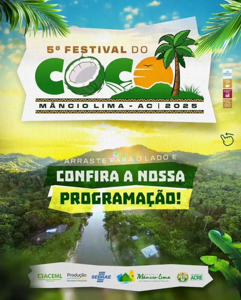 A cidade de Mâncio Lima, no interior do Acre, se prepara para a 5ª edição do Festival do Coco, que acontece de 12 a 14 de setembro de 2025. O evento, que promete atrair moradores e visitantes, terá uma programação diversificada com apresentações culturais, shows de artistas nacionais e locais, além de competições esportivas.