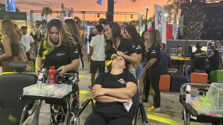 No ritmo da beleza e da ansiedade pré-show, o stand da Fecomércio se transformou no verdadeiro point da ExpoAcre neste domingo. A poucas horas do aguardado show de Jorge & Mateus, o espaço, que começou os atendimentos às 17h em ponto, atraiu uma verdadeira multidão interessada em arrasar no visual antes da última grande noite da feira.