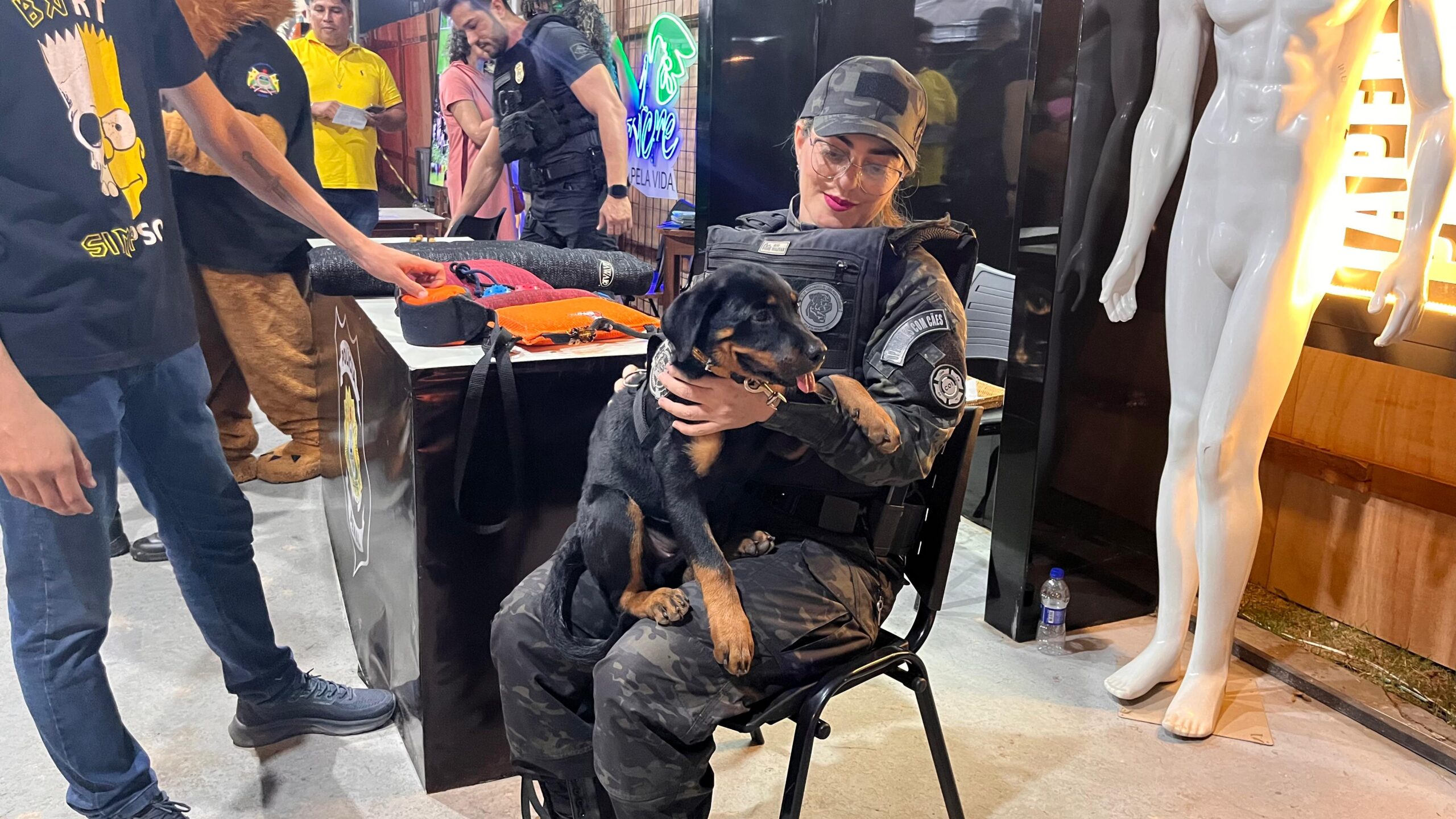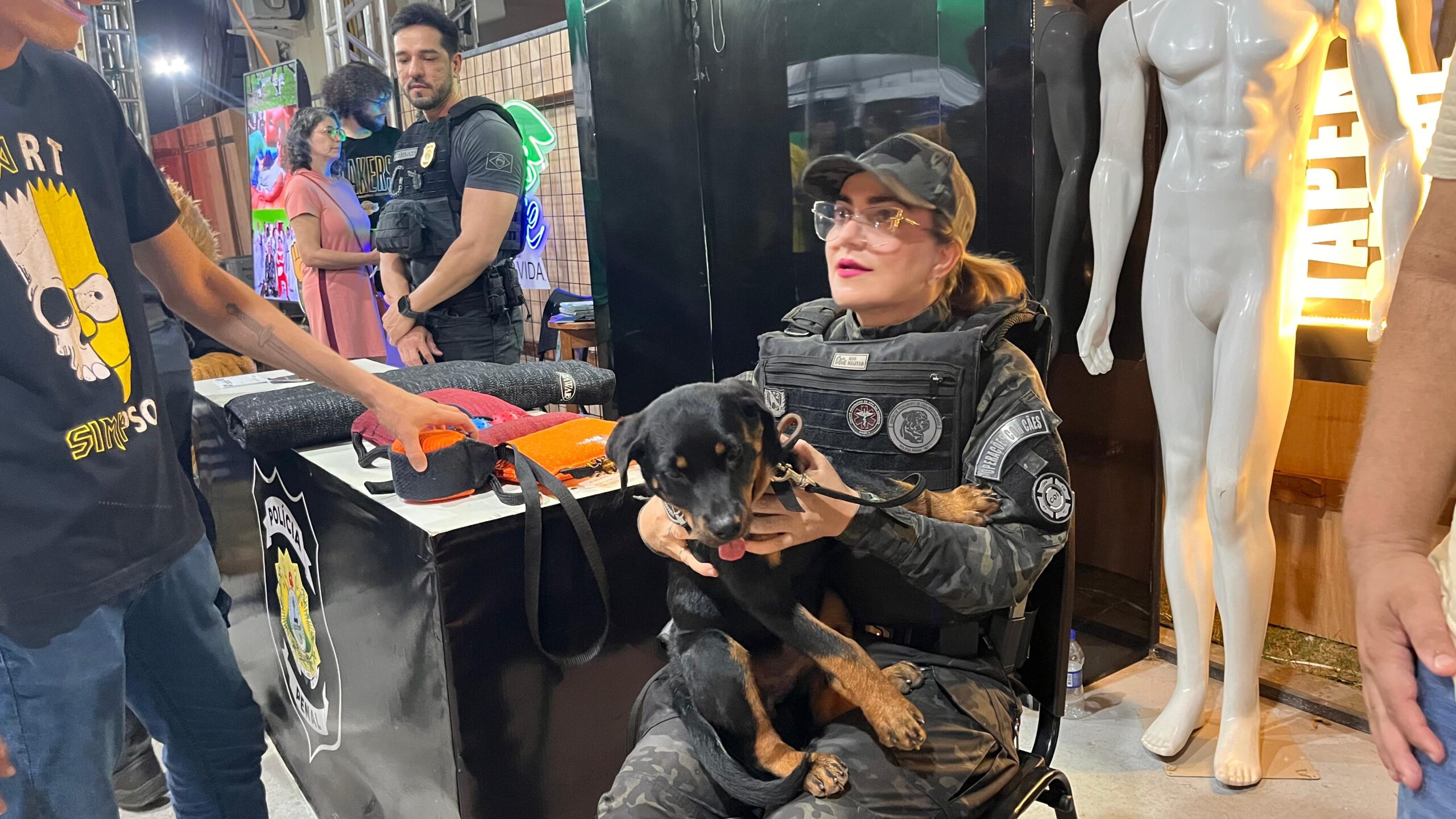 Com apenas 3 meses, Jade encanta o público da Expoacre enquanto inicia seu treinamento para atuar com a Polícia Penal do Acre/Foto: ContilNet
