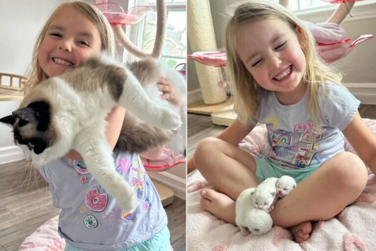 “O mais marcante para mim é como a minha filha queria cuidar dos filhotes depois que eles nasceram. Foi muito fofo ver o quanto ela se importava com eles”, disse Pearl. A família tem mais dez gatos e um cachorro idoso e Pearl acredita que Strawberry tem um laço especial com Blossom.