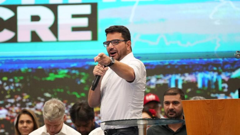 Durante discurso na sede da Cooperacre, em Rio Branco, nesta sexta-feira (8), o governador Gladson Cameli agradeceu ao presidente Lula pela visita ao Acre.