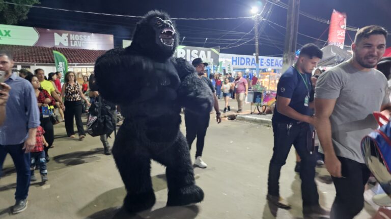 Um gorila gigante virou uma das atrações mais curiosas da Expoacre 2025.