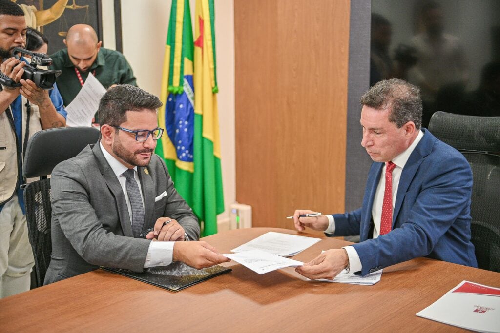 Em um marco institucional inédito no Acre, o governo do Estado e o Tribunal de Justiça (TJAC) formalizaram, na tarde desta quinta-feira, 7, uma parceria estratégica voltada à reformulação do sistema prisional. A cerimônia de assinatura do Termo de Cooperação do Plano Estadual Pena Justa foi realizada na sede do Tribunal de Justiça do Acre (TJAC), com a presença do governador Gladson CamelÍ e do presidente do TJAC, desembargador Laudivon Nogueira.