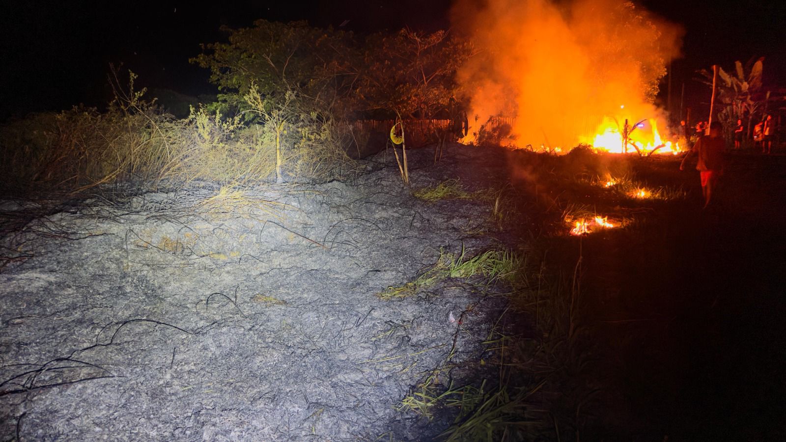 Incêndio criminoso mobilizou moradores, que tentaram conter as chamas antes da chegada da guarnição/Foto: Cedida