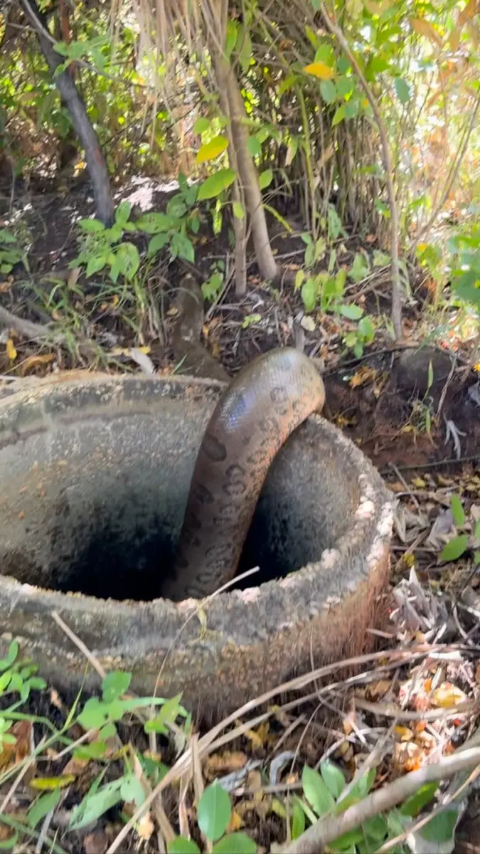 Homem flagra sucuri gigante saindo de manilha: ‘Nunca vi desse tanto, meu Deus’