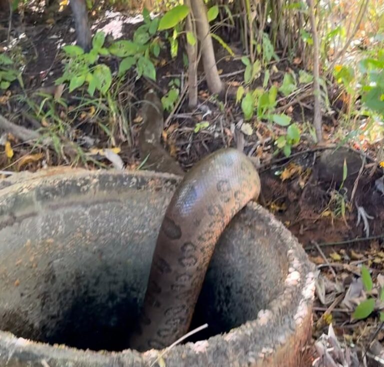 Um vídeo compartilhado nas redes sociais viralizou nos últimos dias ao mostrar a presença de uma sucuri gigante em uma área de manilha. Nas imagens, o homem que registra a cena se mostra impressionado com o tamanho do animal e comenta a todo momento sobre o que está presenciando.