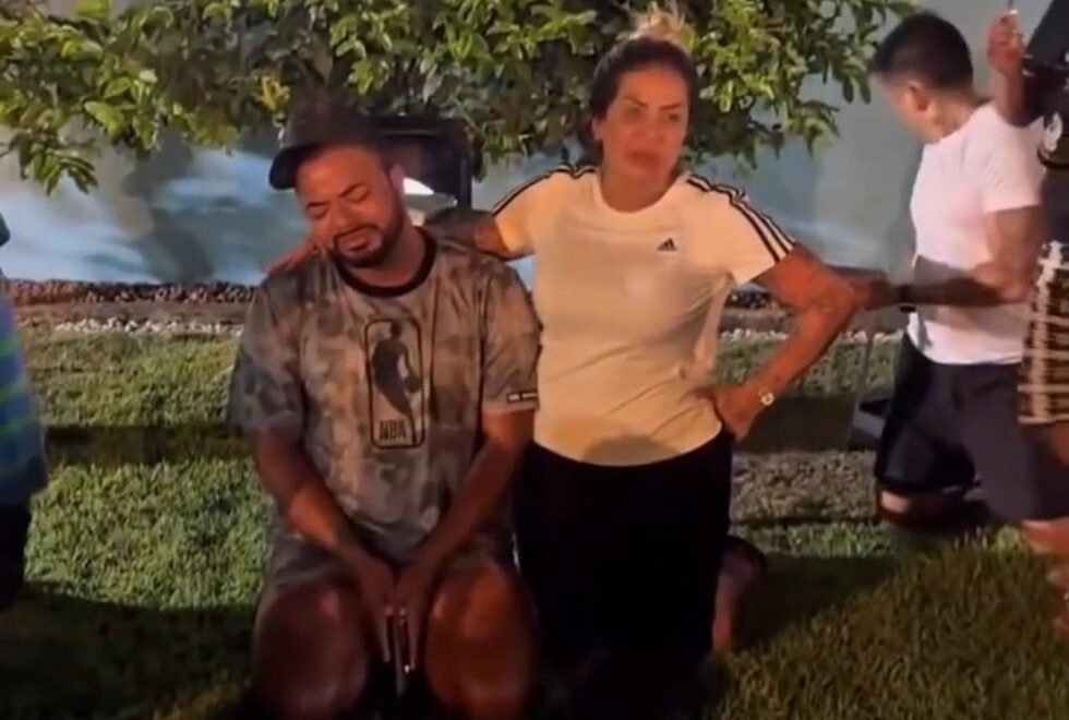 Influenciador aparece de joelhos e chorando, enquanto fiéis intercedem por sua vida/Foto: Reprodução