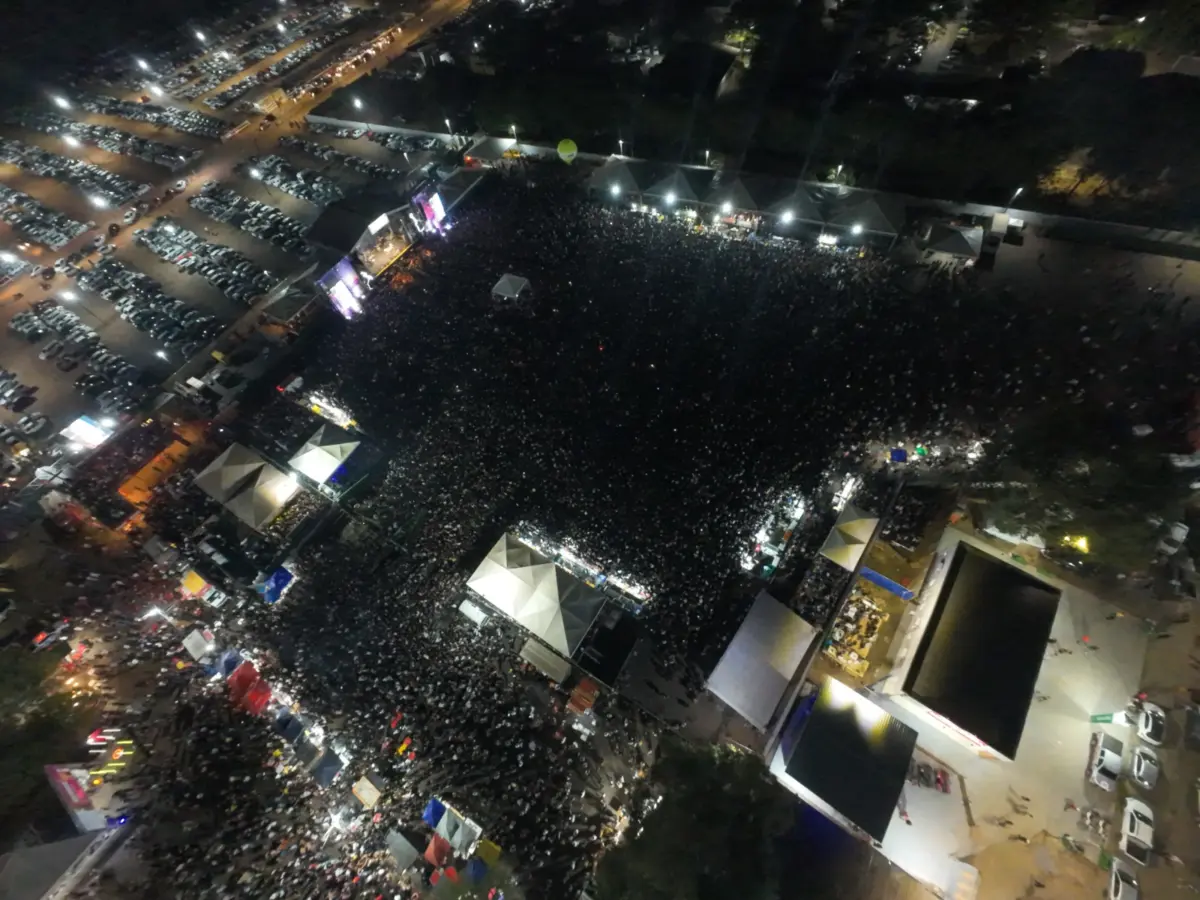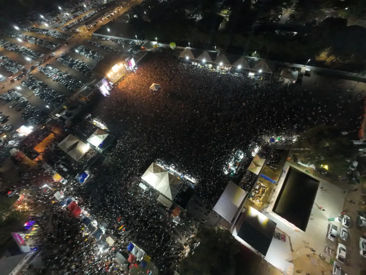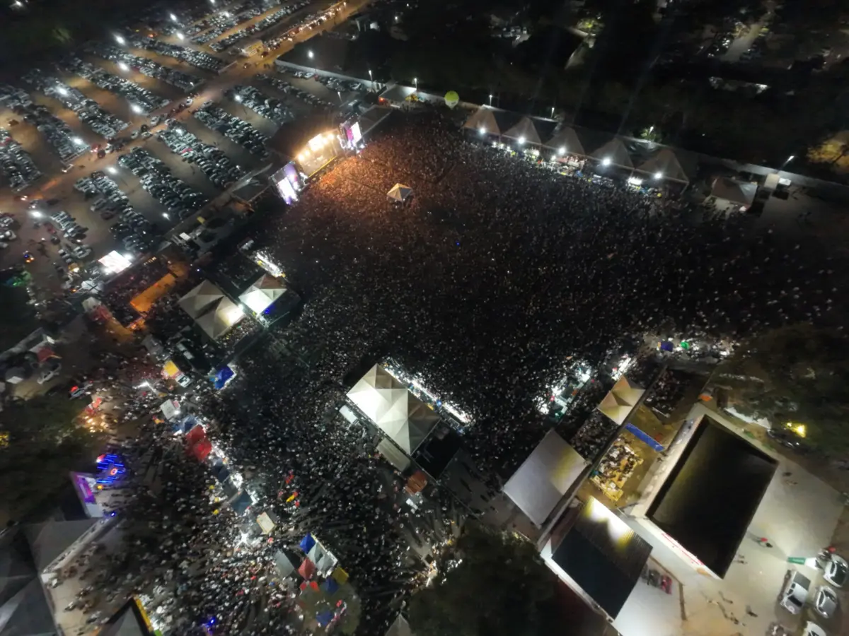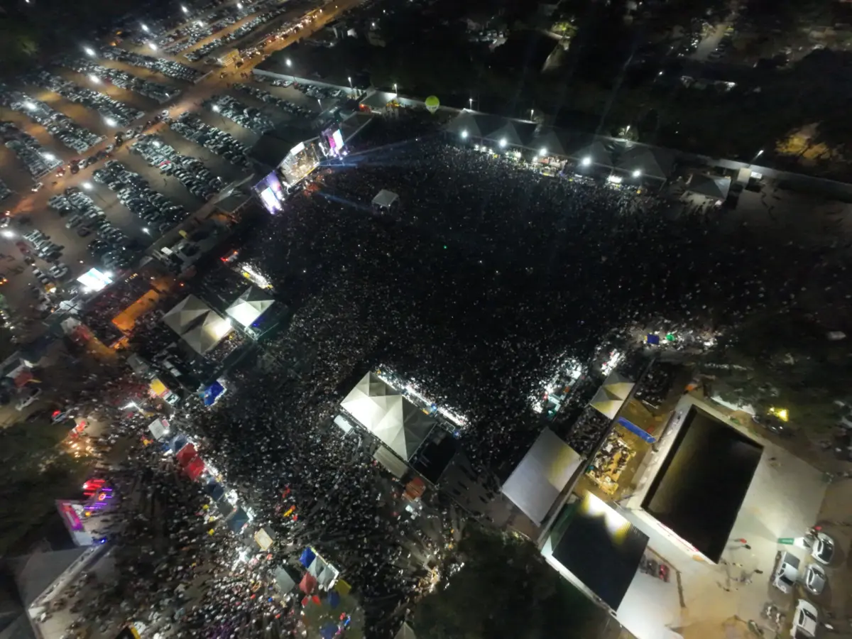 A arena de shows da Expoacre 2025 ficou completamente lotada na noite de domingo (3), último dia do evento, com a apresentação gratuita da dupla Jorge e Mateus. O show marcou o encerramento da 50ª edição da maior feira agropecuária e de negócios do Acre.