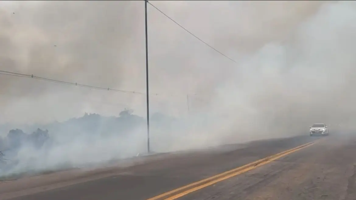 Incêndio atinge área na Via Verde e compromete visibilidade de motoristas; ASSISTA O VÍDEO